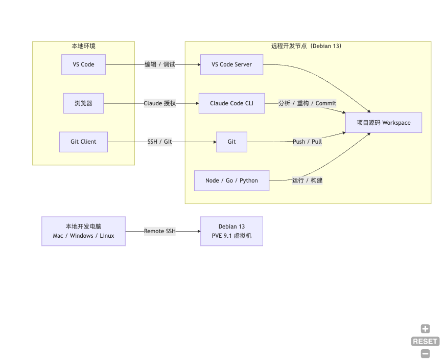 本文面向工程实践场景,目标是在 Proxmox VE 9.1 中部署一台 Debian 13 虚拟机, 作为长期稳定的远程开发节点,并完成以下环境建设: